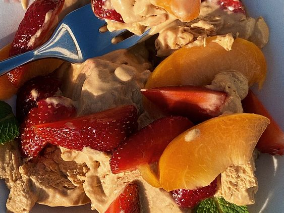 Вершкове морозиво зі згущеним молоком та сезонними фруктами