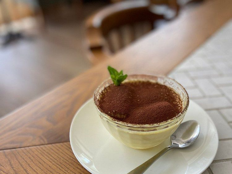 Крем з маскарпоне та вершків, палички савоярді, кава, амаретто, жовток, какао